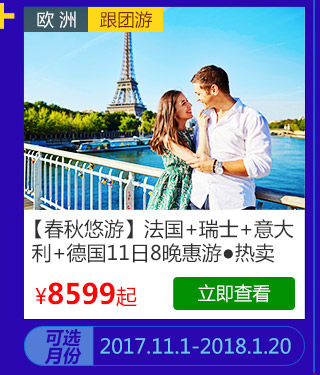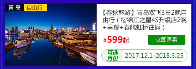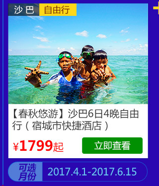 C套餐:8999元享受价值10997元“青岛三日自由行”、“沙巴6日自由行”与“法瑞意德11日8晚惠游”;