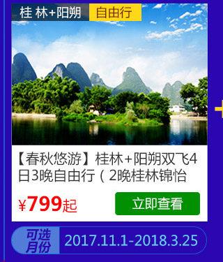 A套餐:2999元享受价值3798元“桂林+阳朔双飞自由行”和“吴哥窟5天3晚半自由行”;